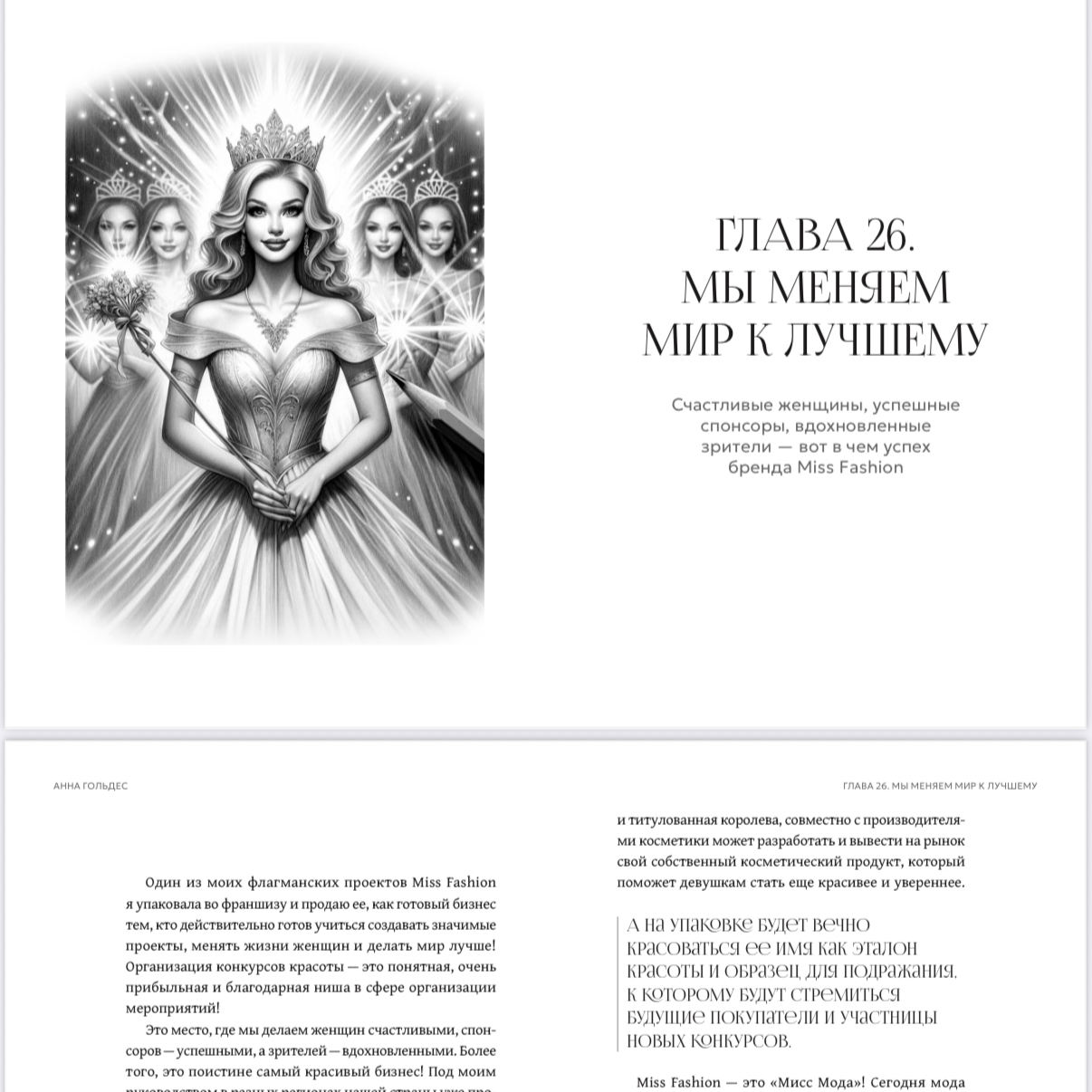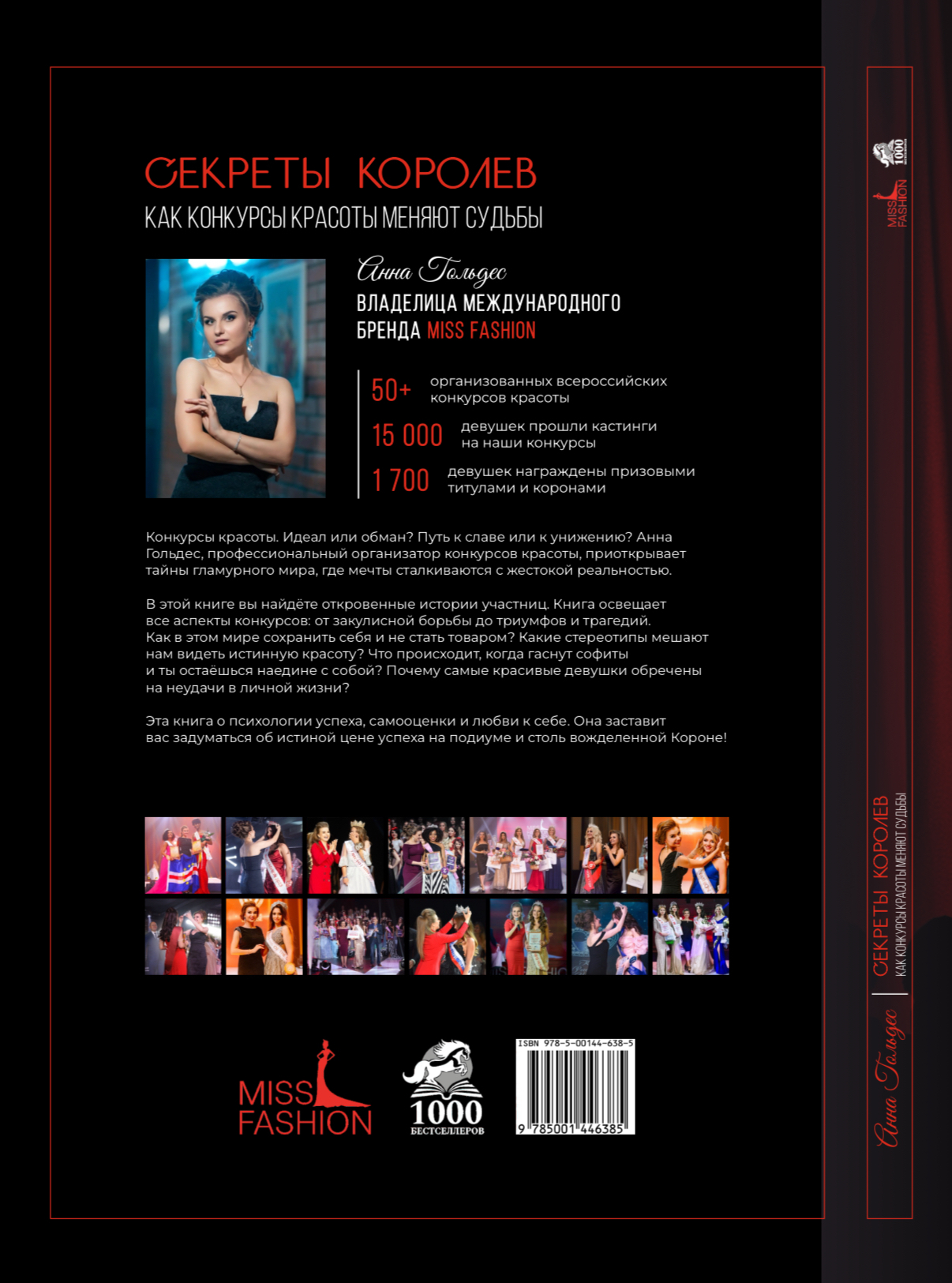 "Секреты Королев: Как конкурсы красоты меняют судьбы" - это книга, написанная Анной Гольдес, профессиональным организатором конкурсов красоты. Она приоткрывает тайны гламурного мира, где мечты сталкиваются с жестокой реальностью. В книге читатель найдет откровенные истории участниц, освещающие все аспекты конкурсов красоты: от закулисной борьбы до триумфов и трагедий. Автор делится своим опытом, описывая взлеты и падения участниц и сложные моменты своей карьеры. "Секреты Королев" будет интересна как тем, кто мечтает о короне, так и тем, кто уже прошел этот непростой путь. Откровенно поднимая проблемные вопросы, книга развенчивает многие стереотипы и проливает свет на скрытые стороны гламурного мира. Искренность и достоверность повествования заставляют задуматься об истинной цене успеха на подиуме. Эта книга станет отличным дополнением к вашей коллекции художественной литературы и поможет вам по-новому взглянуть на мир конкурсов красоты.